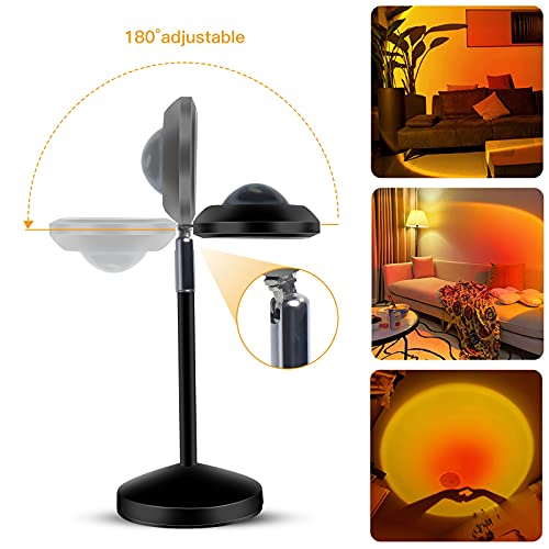 Ampiamente utilizzato: la lampada a LED può ruotare di 180 e regolare il connettore della testa della luce per ottenere l'angolo di cui hai bisogno. La più lunga distanza della lampada al tramonto posizionata, la proiezione più ampia che il tramonto si getta sulla parete, soffitto, perfetto per scattare foto e fotografie o luce di sfondo Vlog, luce notturna per bambini, camera da letto, soggiorno