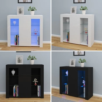 Panana High Gloss Doors Sideboard Storage & RGB Multicolor LED Lighting Livingroom Cabinet Cupboard 6 Display Shelves Furnitures