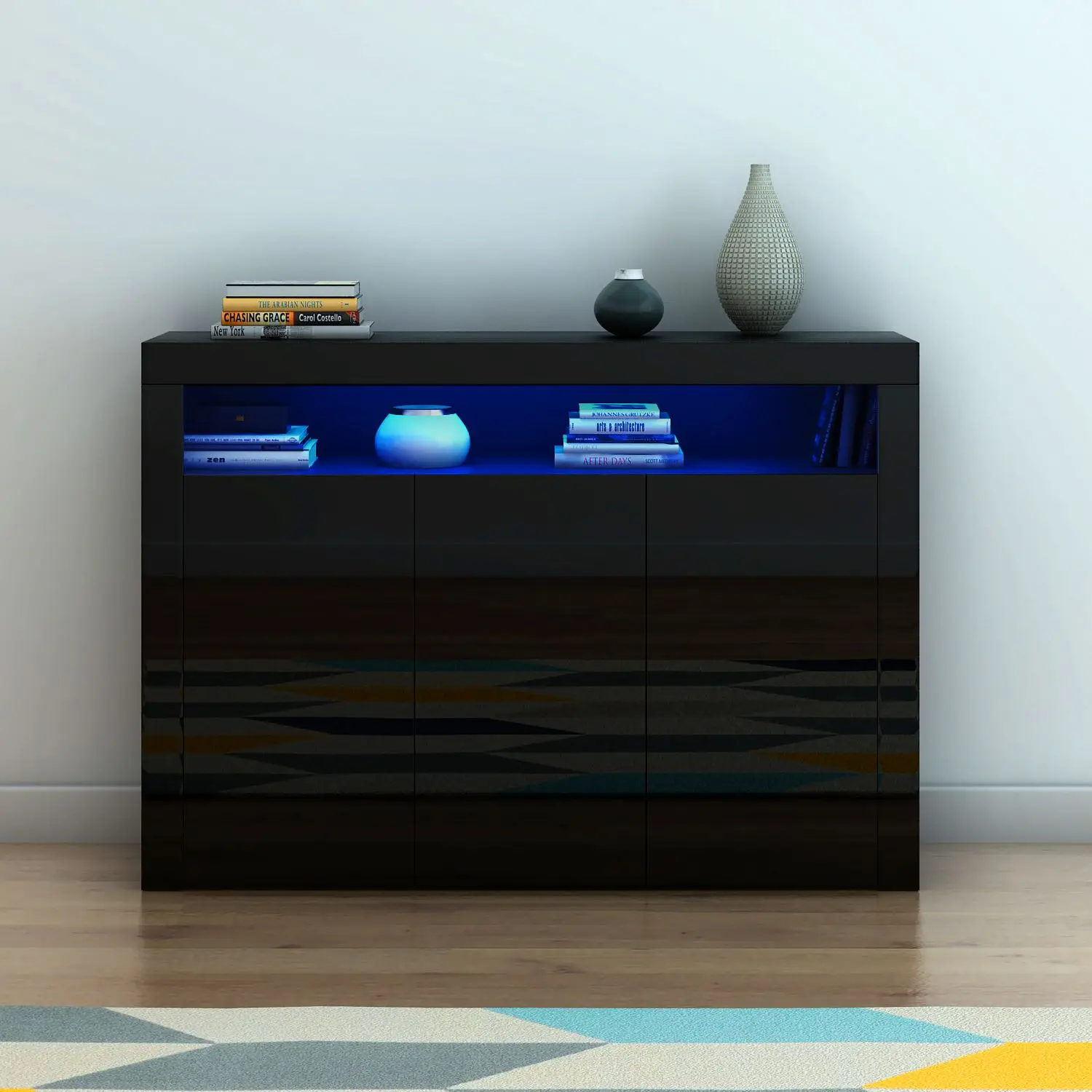Panana Modern Living Room Cupboard Unit Matt Body & White High Gloss Fronts Cabinet Furniture Wall Shelf Ship to Europe