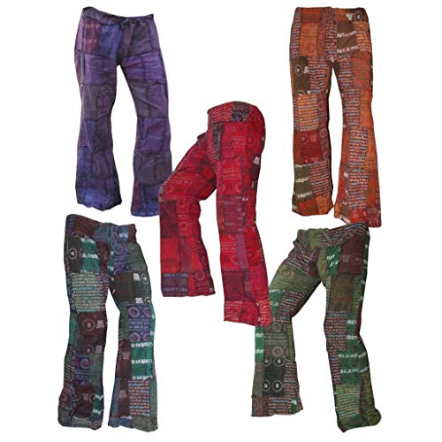 Panasiam Pantaloni patchwork estivi, stile hippie, leggermente a zampa di elefante, in 2 misure, in cotone prelavato