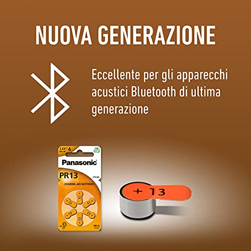 Panasonic PR13 Batterie zinco-aria per apparecchi acustici, Tipo 13, 1.4V, Batterie per apparecchi acustici, 6 pezzi, arancione