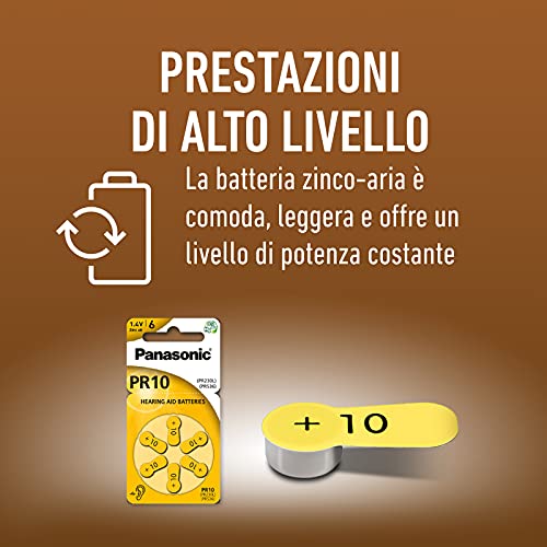 Panasonic PR10 Batterie zinco-aria per apparecchi acustici, Tipo 10, 1.4V, Batterie per apparecchi acustici, 6 pezzi, gialle