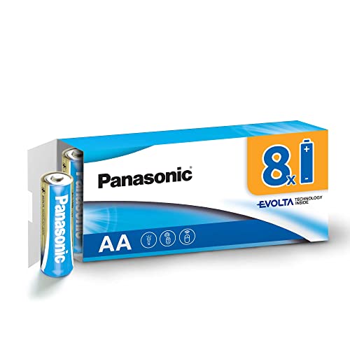 Panasonic EVOLTA TECHNOLOGY INSIDE, AA Mignon LR6, confezione da 8 in imballaggio privo di plastica, 1,5 V, batteria con energia a lunga durata, batteria alcalina