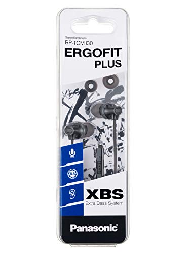 Panasonic RP-TCM130 Auricolari In-Ear a Tenuta Stabile, Driver da 8,8 mm, XBS per Bassi Potenti, Microfono in Linea, Compatibili con Smartphone, Nero