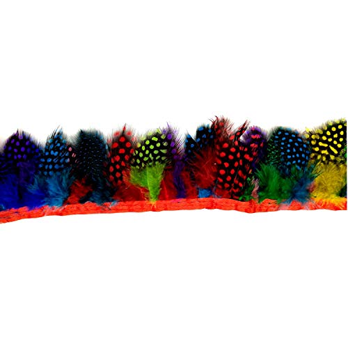 PANAX Piume di Pollo Grigie con Puntini su Strisce di Tessuto di 2m - 5-8 cm Lunghezza di Piume, Ideali per Carnevale, Decorazioni, Artigianato, Costumi, Matrimoni Mix Colore