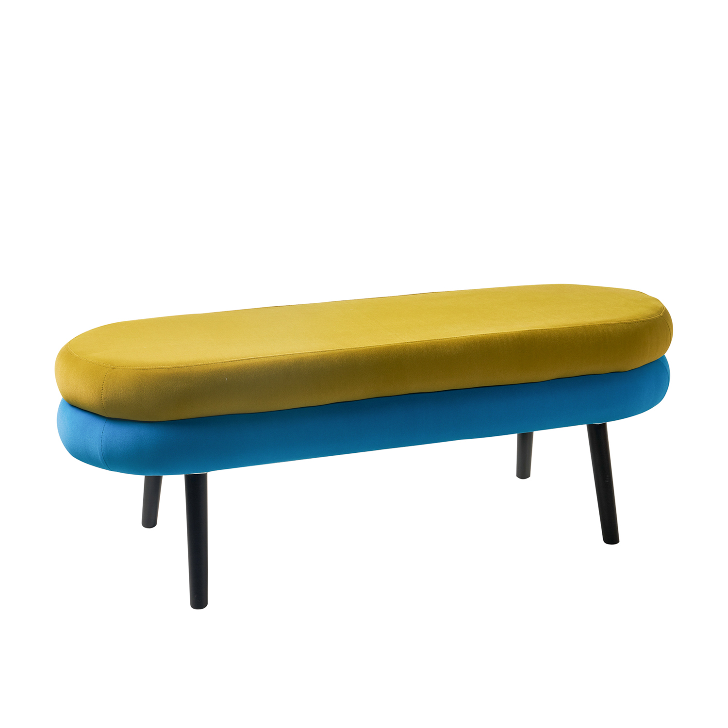 La panca della linea Sandwich prende il nome dalla sua originale struttura a due cuscinotti di colori diversi con effetto imbottito e vellutato. Al livello azzurro sottostante si contrappone la parte superiore verde acido rendendo questo elemento d'arredo vivace e moderno. Offre una seduta comoda da utilizzare all'occorrenza quando hai ospiti a casa, ideale da posizionare in camera da letto, in taverna oppure anche all'ingresso di casa. Misure: 125x45x44 cm.