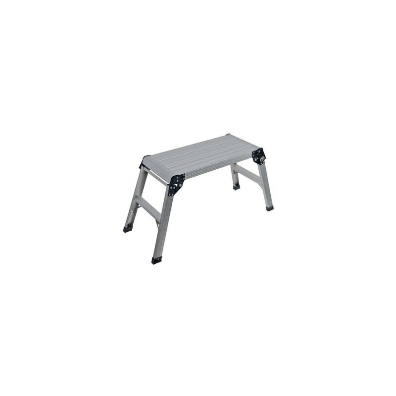 Panca con piattaforma in alluminio.-Misure della base: 61x30cm.-Altezza 50cm.-Gambe pieghevoli con tassello antiscivolo.-Sicuro anti-chiusura.