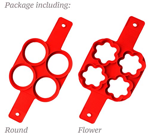 Pancake Stampi in Silicone,Antiaderente Uova Stampi Pancake,Mould Cake Maker Egg anello, Fantastic Fast & modo semplice perfetto Pancakes (A forma Rotonda e Fiore, 2 pezzi)