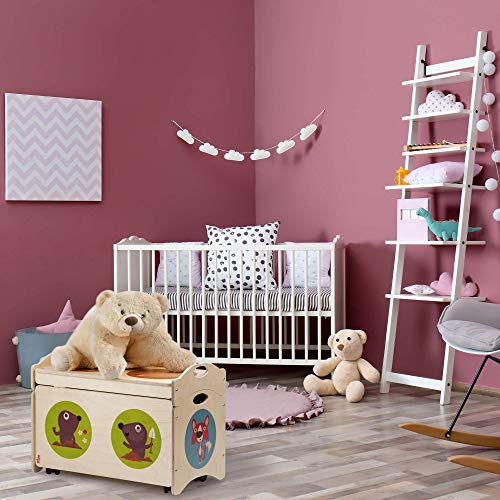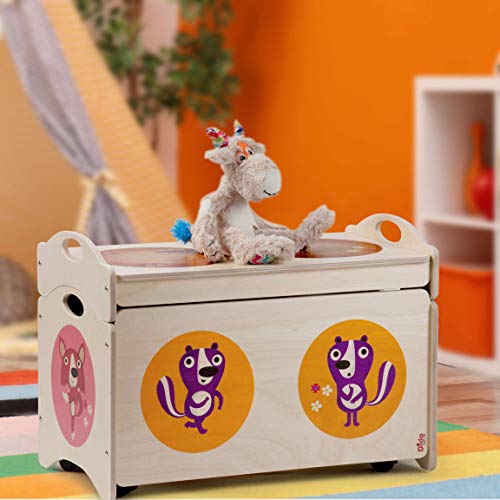 Dida - Pancotti con Volpi, Talpe e Puzzole | Cassapanca contenitore bambini | Portagiochi Contenitori in Legno con Ruote Impilabile per la Cameretta