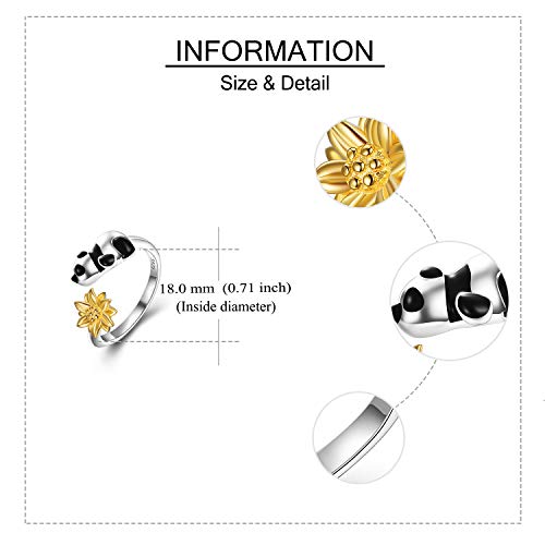 Panda Anelli con girasole in argento Sterling 925 Panda Gioielli Regali per le donne