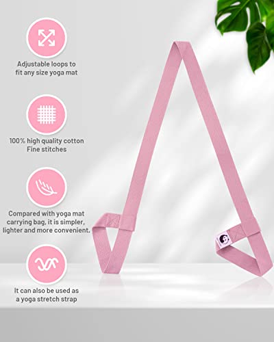 Slim Panda Cinghia Tappetino Yoga In Cotone, Regolabile Cinghia Stretching Gambe con Loop per Tutti i Formati di Tappetino Yoga, Elastica Yoga Mat Strap per Pilates, Gym e Fitness, Rosa