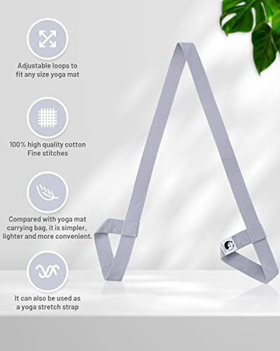 Slim Panda Cinghia Tappetino Yoga in Cotone, Regolabile Cinghia Stretching Gambe con Loop per Tutti i Formati di Tappetino Yoga, Elastica Yoga Mat Strap per Pilates, Gym e Fitness, Grigio Scuro