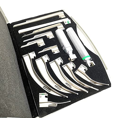 LXT PANDA Kit Deluxe per intubazione delle Vie aeree - Set di 12 Lame dritte + Curve e 2 impugnature Sorgente di Luce Verde Fredda, Kit di Pronto Intervento