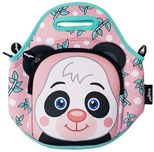 Panda - - FRINGOO Kids Lunch Bag Neoprene Thermal Insulated Zipped Pocket Shoulder Strap Nursery School Cooler Bag (Panda)