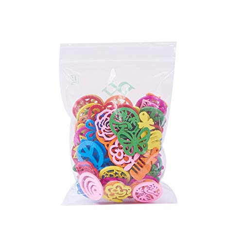 Pandahall 100PCS Ciondoli Carini Ciondoli Legno Ciondoli per Bracciali Hollow-out, Bottoni in Legno, Colore Misto, Circa 25mm di Diametro