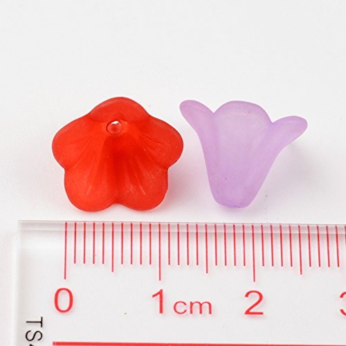 PandaHall 100pcs Perline Acrilico Colore Misto, Fiore, circa15mm di Larghezza, 10mm di Lunghezza, Foro: 1.5mm