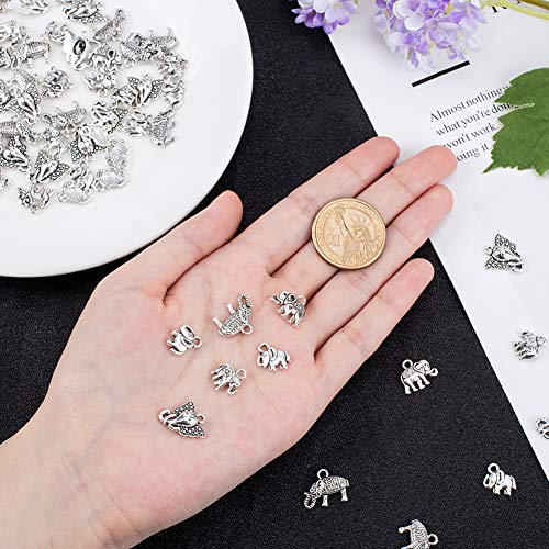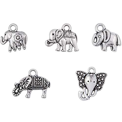 PH PandaHall 100pcs 5 Stili in Lega di Elefanti Pendenti in Stile Tibetano Argento Antico Animale Portafortuna per Artigianato creazione di Gioielli