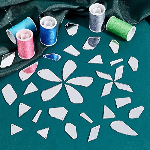 PH PandaHall 180pcs Cucire su Specchio Strass, 10 Stile Cucire su Specchio Acrilico Diamante Cristallo Piatto Specchio Perline Acrilico Pezzi con Foro per Costume Abiti da Sera Abbigliamento