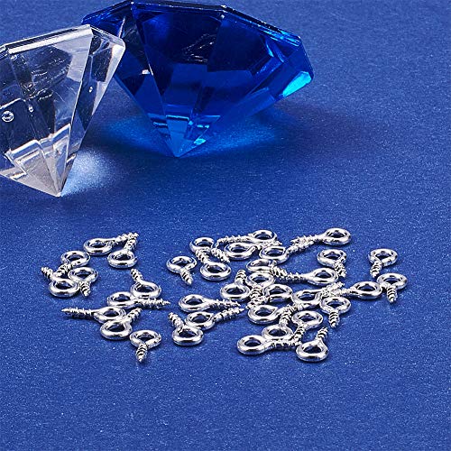 PandaHall 200PCS Accessori Connettore Vite Chiondoli Occhiello in Ferro, per Perline Semiforati, Colore Argento, 8x4x1mm, Foro: 2mm