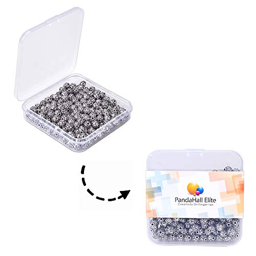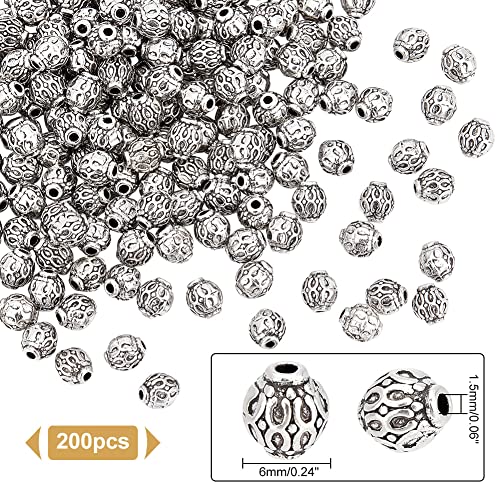 PandaHall 200pcs perline distanziali rotonde lega tibetana argento antico distanziatori in metallo perline di fascino per la collana braccialetto creazione di gioielli fai da te, 6 mm, foro: 1,5 mm