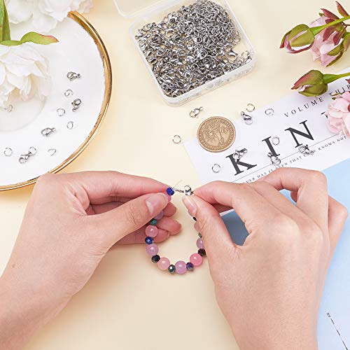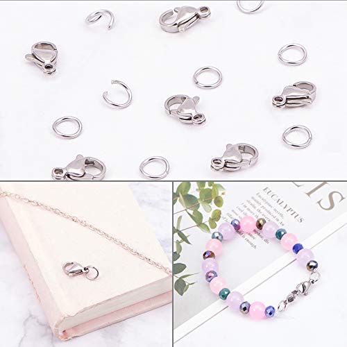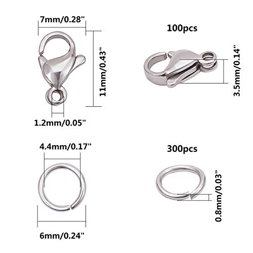 PH PandaHall 300pcs 6mm Acciaio Inossidabile Aperto Anelli di Salto con 100pcs Chiusura a Moschettone 11x7x3.5mm Kit di Gioielli Risultati Accessori per Gioielli Artigianali Fare