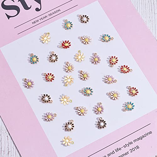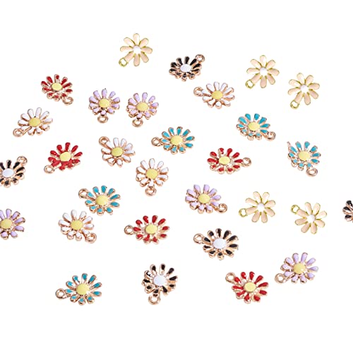 PH PandaHall 30pcs 6 colori pendenti in smalto fiore lega piccola daisy ciondola i fascini per collane bracciali creazione di gioielli