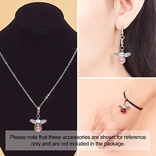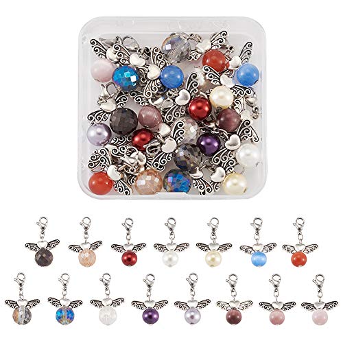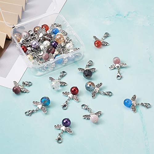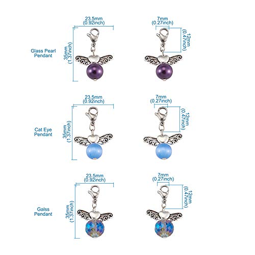 PandaHall 30pcs perline di vetro rotonde perle di vetro perle di occhio di gatto perline pendenti pendenti con ala e chiusura a moschettone in acciaio inossidabile per la creazione di gioielli