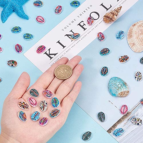 PH PandaHall 40pcs 10 Perline di Conchiglia di Stampa a Colori Lega Perline di Conchiglia di ciprea per Fai da Te Collana di bracciali da Spiaggia Estiva creazione di Gioielli Artigianali, 16x11mm