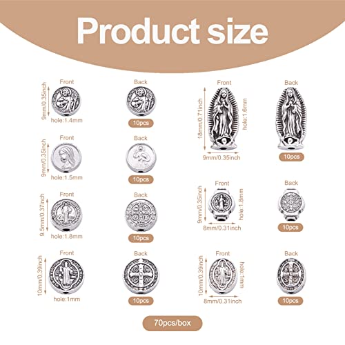 Pandahall 70Pcs Gesù Croce San Benedetto Medaglia Perline sciolte Vergine Maria Charms Distanziatore per FAI DA TE Rosario Collana Braccialetto Religioso Gioielli Fare