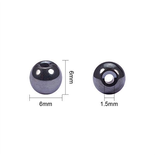 PandaHall 10 Fili 720PCS 6mm Perline Ematite Perline per Bigiotteria Non-Magnetiche, Rotondo, Colore Nero, Foro: 1.5mm, circa 72pcs/filo