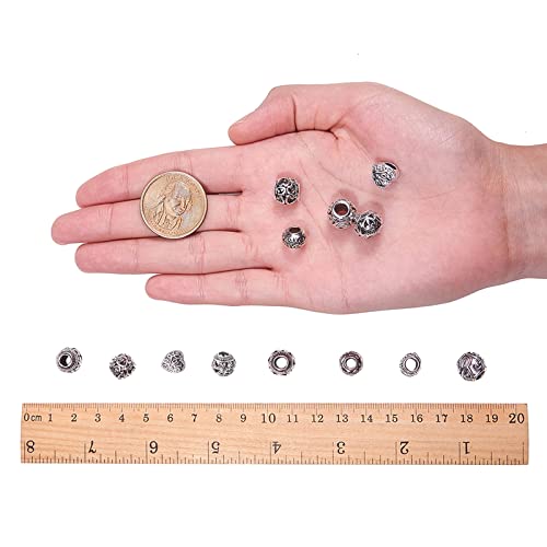 PandaHall 80pcs 8 Stili Lega Grande Foro Perline Cuore barile rondelle distanziatore Perline Argento Antico Europeo Charms per Collana Braccialetto creazione di Gioielli