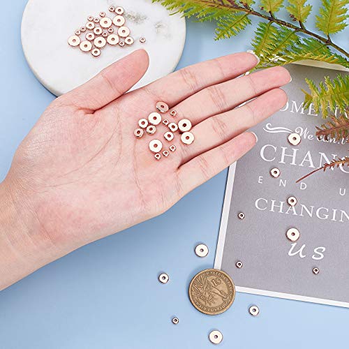 PandaHall 90pcs 3 Dimensioni Disco Piatto distanziatore Perline Ottone Heishi Rondelle Gioielli distanziatore Perline per Heishi Argilla Perle Collana Braccialetto Ricerca, Oro Rosa