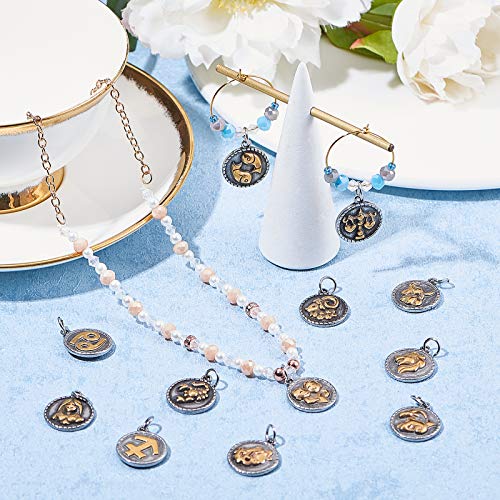 PandaHall Acciaio Inossidabile 12 Ciondoli di Costellazione Piatti Rotondi Segni zodiacali Simbolo Ciondolo Portafortuna Dorato Vintage per Collana Portachiavi Creazione di Gioielli