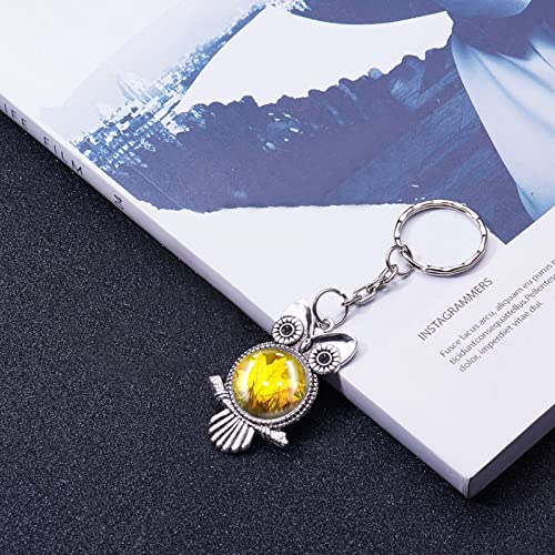 PandaHall 72pz Cabochon Portachiavi Fai da Te Ciondoli Gufo Accessori Chiave di Ferro Cabochon in Vetro Trasparente Impostazioni cabochon in Lega tibetana per Laurea Matrimoni Portachiavi Regalo, 20mm