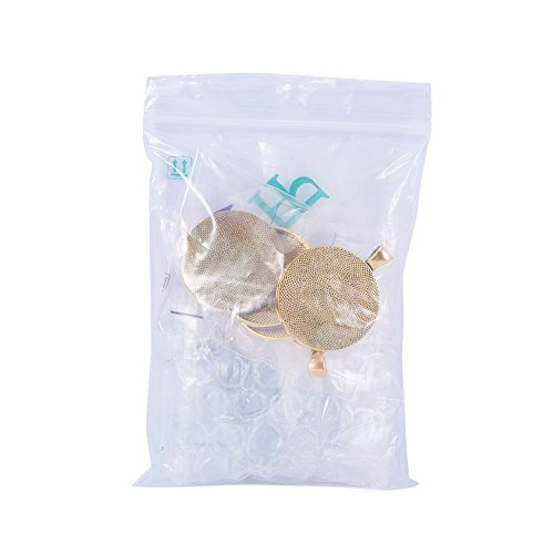 PandaHall 5 Set 30mm Cabochon Vetro Ciondoli per Collane Bracciali Cupola Trasparente e Basi Ciondoli Colore Oro Antico, Ciondoli: 41x32x3mm, Foro: 4mm, Vassoio: 30mm