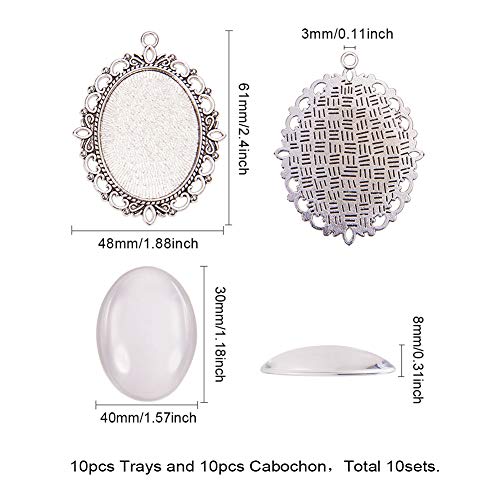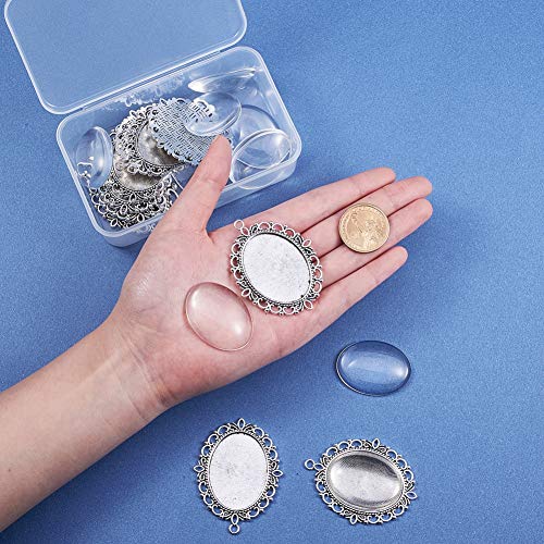 PandaHall 1 Set Cabochon Kit Cabochon di Vetro Ovale Argento Antico Cabochaon Base Chiaro Cabochon 40x30mm per Creare Gioielli Cabochaon Base Materiale Fai da Te