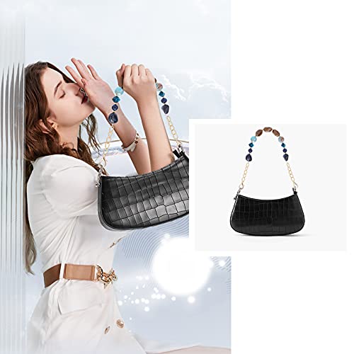 Catena per borsa corta: la catena è lunga circa 43 cm/16.9 pollici, fermagli: 30x23x3.5 mm, le perle di forma mista sono larghe circa 13.5~27 mm. Catene per borse corte, non abbastanza a lungo per attraversare il tuo corpo, potrebbe essere usato come cinturino da polso o decorazione. Aggiungi ulteriore brillantezza alle tue borse.