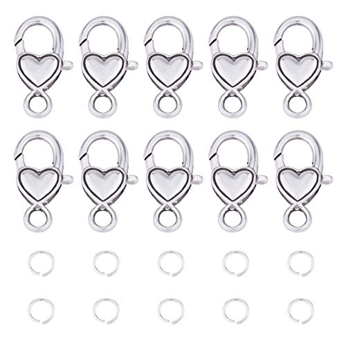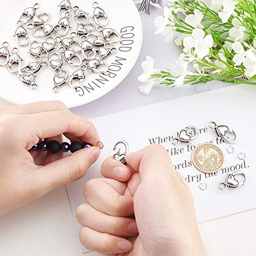 PH PandaHall chiusure moschettone gioielli cuore 30pcs con 50pcs 6mm anelli aperti argento fermagli aragosta artiglio per bracciale gioielli collane fai da te