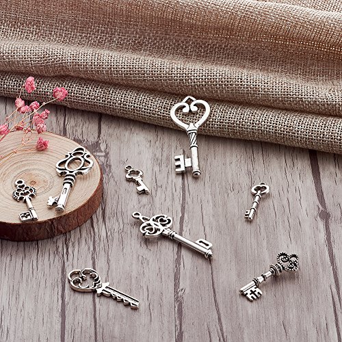 PandaHall 45 ~ 55 ciondoli a forma di chiave in lega argento antico vintage a scheletro per gioielli fai da te fai da te, stili misti casuali