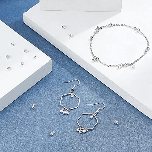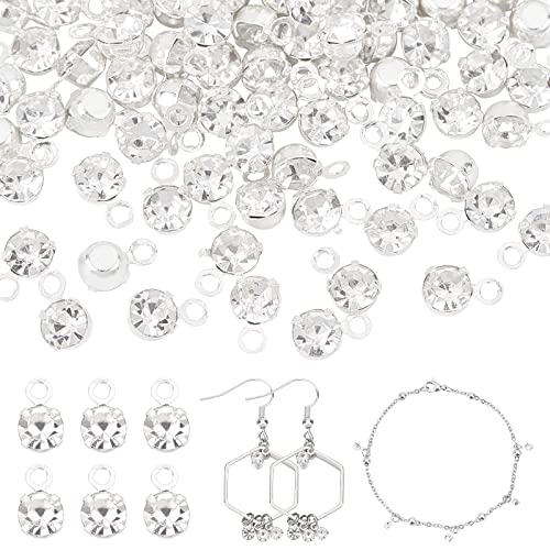 PH PandaHall Ciondoli con Strass, 100 pz 3mm Piccolo Ciondola Pendenti Diamante Mini Rotonda Perline di Cristallo per Orecchini Bracciali Collane Girocolli Cavigliera Gioielli FAI DA TE Fare, Argento