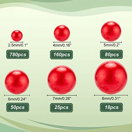 PH PandaHall Circa 1113pcs 6 Dimensioni Senza Fori/Perle di Perle Imitate Non forate per riempitori di vasi Matrimoni Feste Natale Decorazioni, Rosse (2,5 mm, 4 mm, 5 mm, 6 mm, 7 mm, 8 mm)
