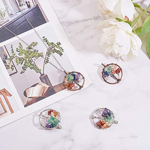 PH PandaHall 4pz 2 colori Albero della vita Ciondoli Bomboniere Charms pendenti con pietre preziose naturali Ciondoli piatti con pietre curative rotonde per Matrimoni Battesimo Portachiavi Gioielli