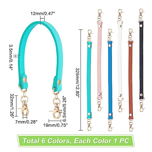 PH PandaHall 6 Colori Maniglia per Borsa in Pelle PU, Manico per Borsa di Ricambio con Cinturino Corto da 32.6 cm con Fermagli Girevoli in Oro Chiaro per Borsa Fatta A Mano Borsa, 6 pc