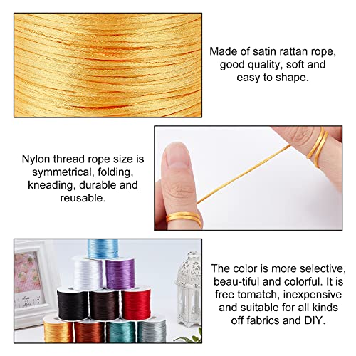PandaHall 10 Colori 850 yarde Cordoncino in Raso di Seta con Coda di Topo, Cordoncino in Nylon Satinato 1 mm Kumihimo Rattail String per Braccialetto Dell'Amicizia, Nodo Cinese, Macramé, Gioielli
