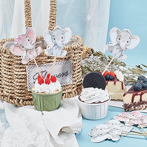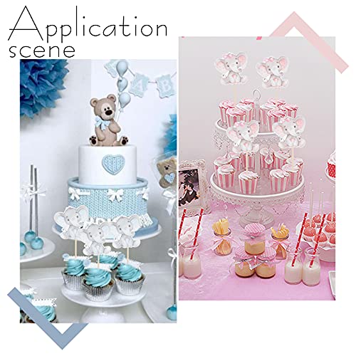 PandaHall 2 Colors Elefante Cupcake Toppers, 48 pz Battesimo Cupcake Picks Forniture per Feste di Compleanno per Bambini per La Decorazione della Doccia di Compleanno per Matrimoni
