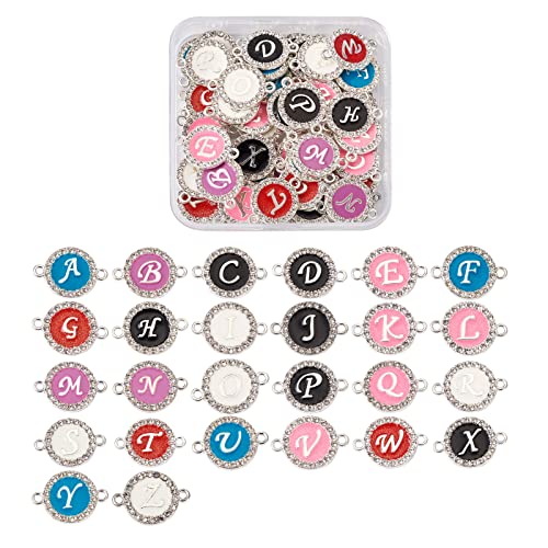 PandaHall 52 connettori rotondi piatti dell'alfabeto A ~ Z, colori misti in lega smaltata con lettere di fascino con strass di cristallo per la creazione di gioielli e braccialetti