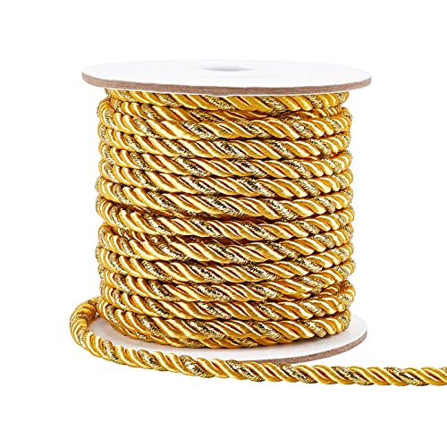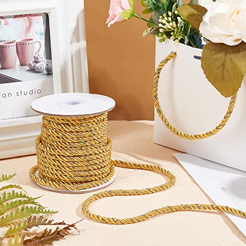 PH PandaHall 5mm Corda Intrecciata Metallica Corda A 3 strati di Poliestere Corda A Due Colori Corda Lucida per Decorazioni per La Casa, Tappezzeria, Fermatenda, Cordone D'Onore (Oro)