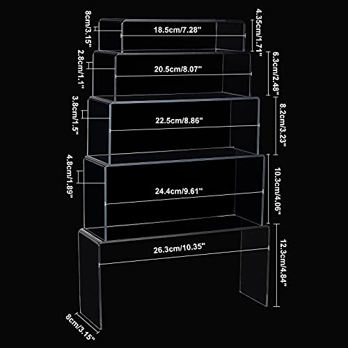 PandaHall 5 Dimensioni Grandi Espositori in Acrilico Riser Stand, Espositori per Gioielli Trasparenti Scaffale Riser Vetrina Infissi per Figure Pop Decorazioni da Tavola Cupcake Dessert