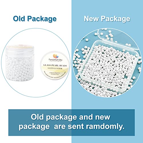 PandaHall Elite 1000PCS Perline Vetro Perlaceo Rotonde Perline Perline Bianche Perla Tinte 4mm per Decorazione bigiotteria Fai da Te, Colore Bianco
