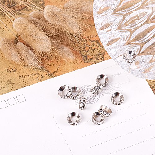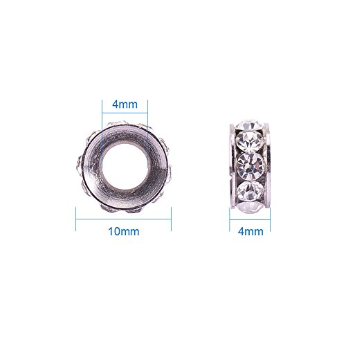 PandaHall Elite 10PCS Perline Vetro Strass Rotonde Grado A Perline Distanziatori Ottone Colore Platino, 10x4mm